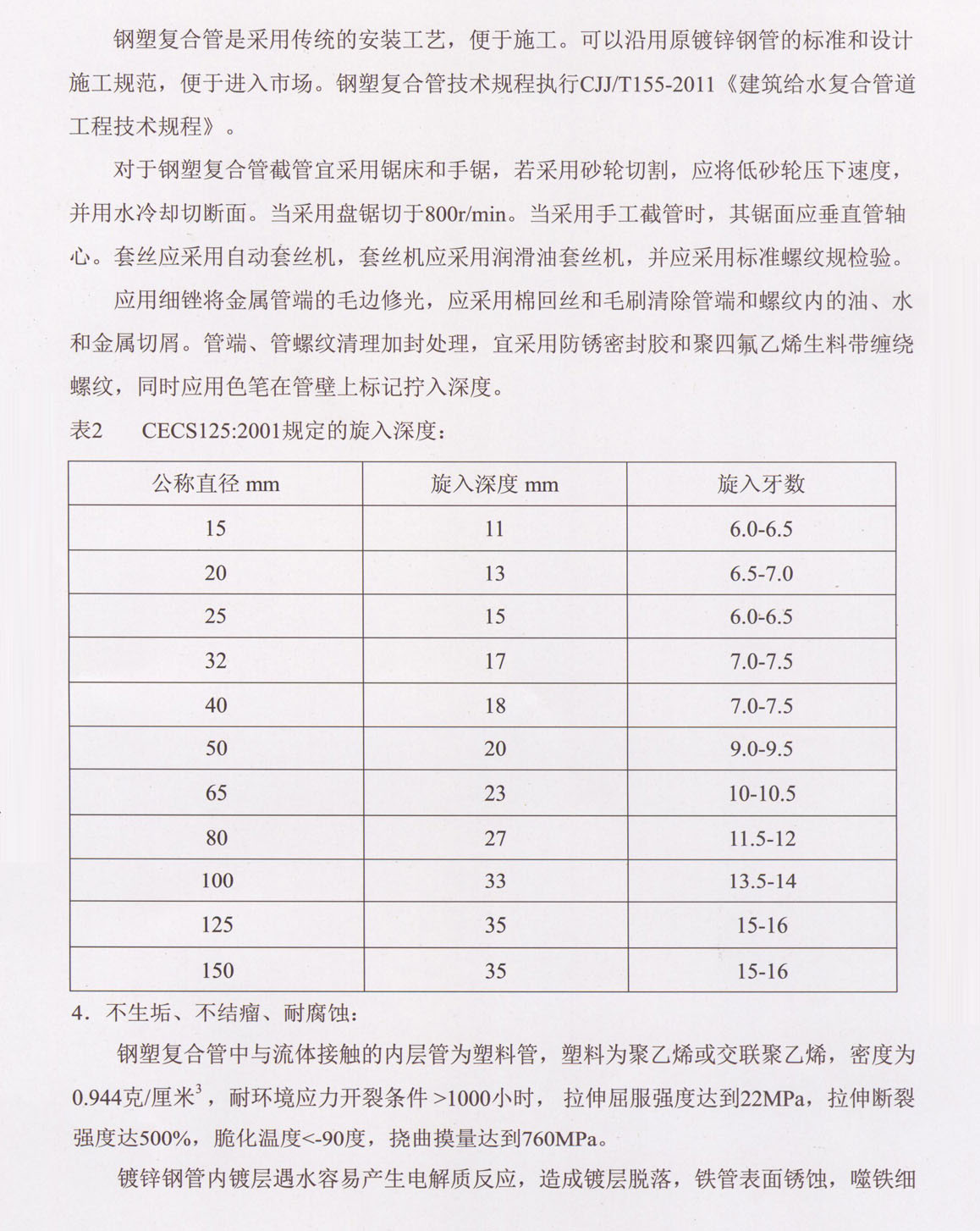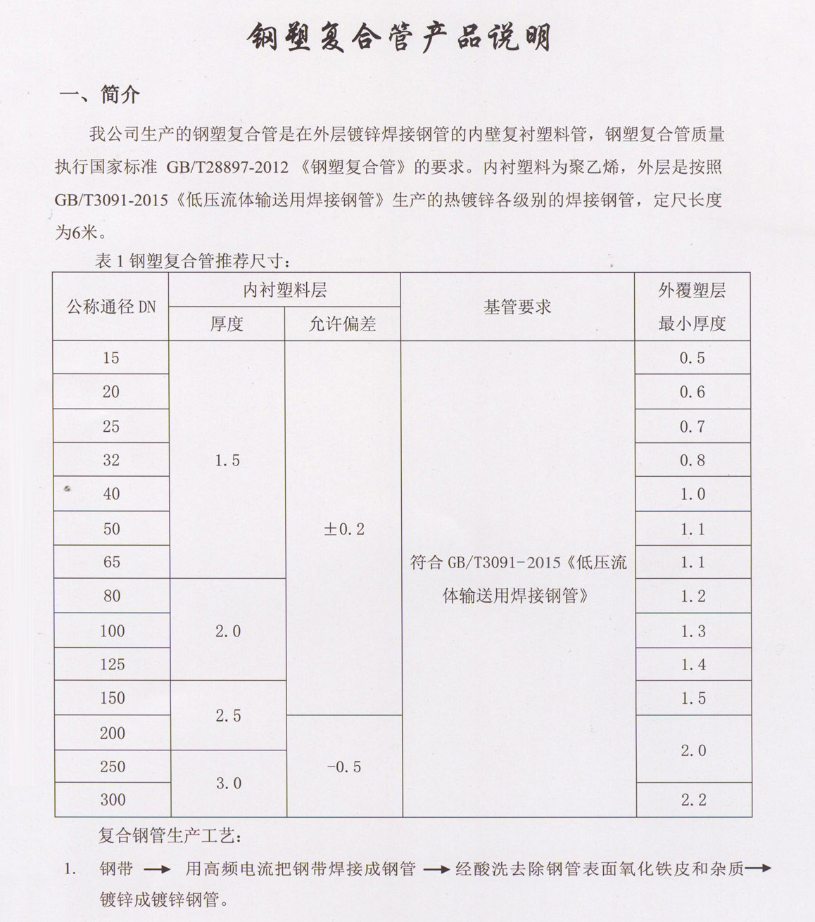 | 鋼塑復(fù)合管 | DN80-DN125 | 2.0/1.5 | 1.2-1.4 |