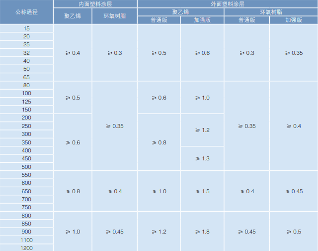 | 鋼塑復(fù)合管 | DN15-DN65 | 1.5/1.0 | 0.5-0.1 |